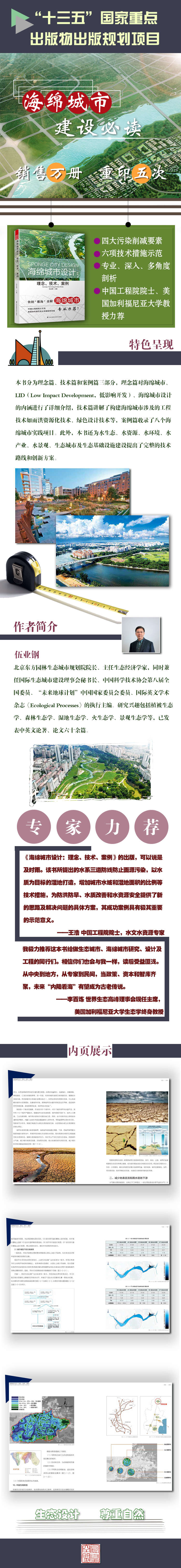 那么到底什么是“海綿城市”呢?又如何構(gòu)建,如何維護(hù)管理呢?從這兩本書中,你將得到答案。你可能是建筑、景觀、環(huán)境等相關(guān)專業(yè)的學(xué)生,可能是這一領(lǐng)域的專家學(xué)者,也可能是城市建設(shè)、雨洪管理的水環(huán)境關(guān)注者,還可能是市政建設(shè)的政府員工,只要你想了解“海綿城市”,想知道為什么我們被迫要在城里“看?!?,甚至想找到解決辦法,為構(gòu)建“海綿城市”助力的話,那么這本書將是你不二的選擇!