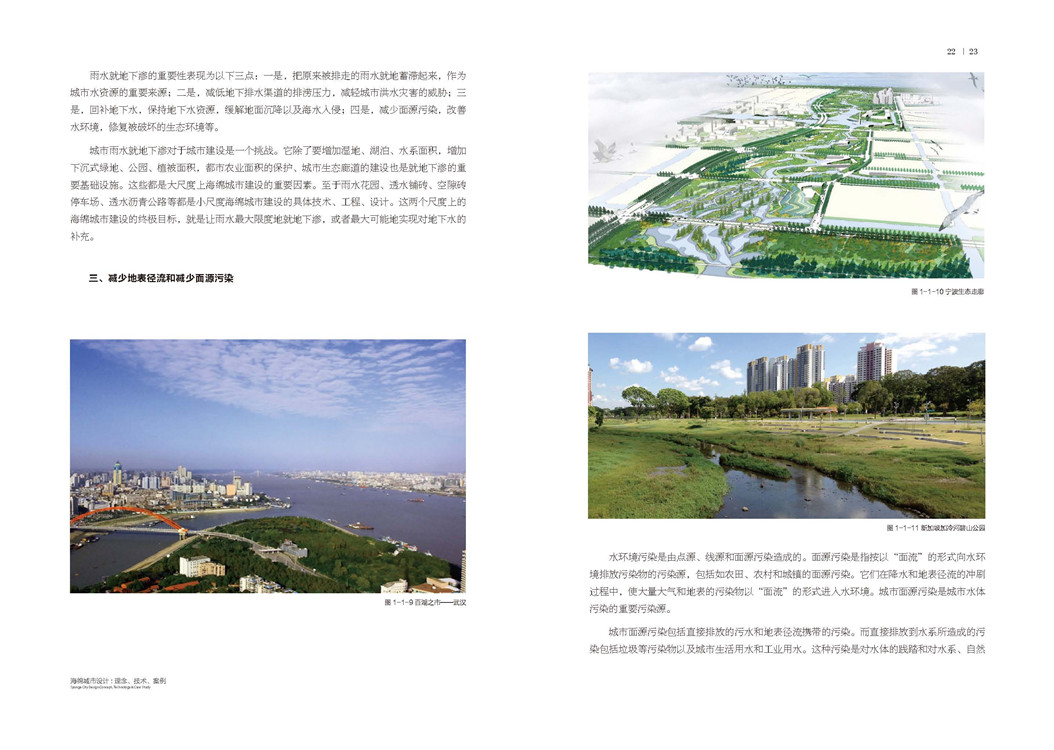 全書分為理念篇、技術(shù)篇和案例篇三大章,理念篇對于海綿城市、LID、海綿城市設(shè)計(jì)的定義與內(nèi)涵進(jìn)行了詳細(xì)介紹,技術(shù)篇介紹構(gòu)建海綿城市過程中涉及到的工程技術(shù)如雨洪資源化技術(shù)、水生態(tài)治理技術(shù)和綠色設(shè)計(jì)技術(shù)等,案例篇則收錄了其團(tuán)隊(duì)近年來八個海綿城市實(shí)踐項(xiàng)目,景觀項(xiàng)目類型豐富,包括了濕地設(shè)計(jì)、水庫設(shè)計(jì)、水生態(tài)治理及水系設(shè)計(jì)等海綿城市構(gòu)建聚焦的項(xiàng)目。