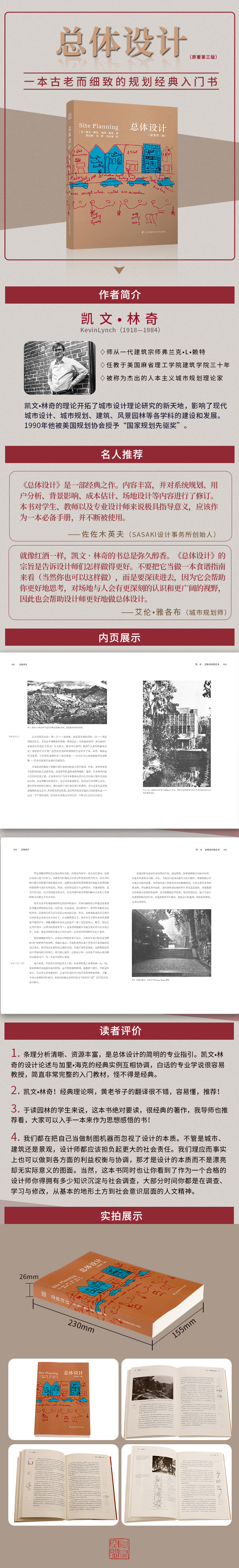 一本古老而細(xì)致的入門書,但其中關(guān)于設(shè)計(jì)的全過程以及對(duì)基地、行為、景觀、土方及公共管線、社會(huì)影響、利益權(quán)衡等,會(huì)讓你對(duì)一個(gè)完整的設(shè)計(jì)和設(shè)計(jì)師該盡到的社會(huì)責(zé)任有更進(jìn)一步的認(rèn)識(shí)。我們都在把自己當(dāng)做制圖機(jī)器而忽視了設(shè)計(jì)的本質(zhì)。不管是城市、建筑還是景觀,設(shè)計(jì)師都應(yīng)該擔(dān)負(fù)起更大的社會(huì)責(zé)任。我們理應(yīng)而事實(shí)上也可以做到各方面的利益權(quán)衡與協(xié)調(diào),那才是設(shè)計(jì)的本質(zhì)而不是漂亮卻無實(shí)際意義的圖面。當(dāng)然,這本書同時(shí)也讓你看到了作為一個(gè)合格的設(shè)計(jì)師你得擁有多少知識(shí)沉淀與社會(huì)調(diào)查,大部分時(shí)間你都是在調(diào)查、學(xué)習(xí)與修改,從最基本的地形土方到社會(huì)意識(shí)層面的人文精神。