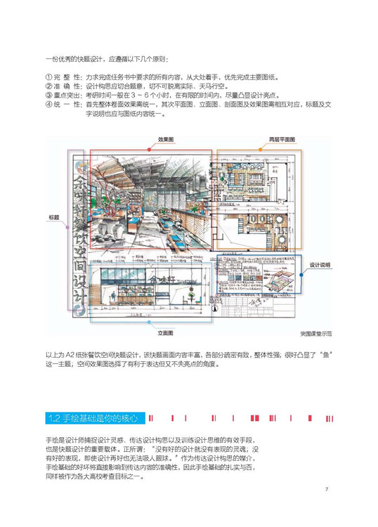 第三章 突圍高分秘籍。重點(diǎn)解析室內(nèi)設(shè)計(jì)考研不同試題方向中設(shè)計(jì)思維與表現(xiàn)技法的結(jié)合攻略。