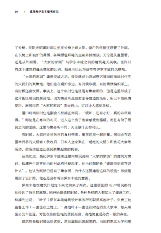 通過(guò)本書(shū)不僅能了解到建筑大師伊東豐雄的建筑從業(yè)心路歷程,還能了解到作為“永恒建筑的締造者”的伊東豐雄,對(duì)自身的自我要求。