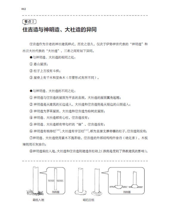 本書將日本古建筑中的神社、寺院、書院三部分,按照建筑樣式細(xì)分成住吉造、春日造、流造、日吉造、八坂造、飛鳥樣式、和式、大佛樣、禪宗樣、折中樣等14種建筑樣式在住吉大社本殿,領(lǐng)略懸山屋頂?shù)闹本€美