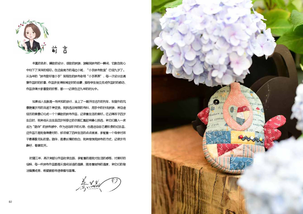 本書是一本詳細(xì)講解拼布技巧和拼布作品制作過程的的圖書,無論是白領(lǐng)、文藝青年還是全職家庭主婦,也無論有沒有縫紉經(jīng)驗(yàn),只要熱愛手工、跟著作者的技法步驟一步步實(shí)踐,都能動(dòng)手嘗試拼布,做出精致可愛的拼布作品。不需要沉重昂貴的工具和太長時(shí)間,也沒有太繁瑣的步驟,只需要用隨手就能得到的邊角布料,發(fā)揮自己天馬行空的想象力,以及一點(diǎn)堅(jiān)持、一點(diǎn)耐心。生活中每一個(gè)驚喜、每一段珍貴的回憶,都可以用拼布記錄下來。在午后的溫暖陽光下,拿起針線,時(shí)間在裁剪、手縫的過程之中悠然流淌。