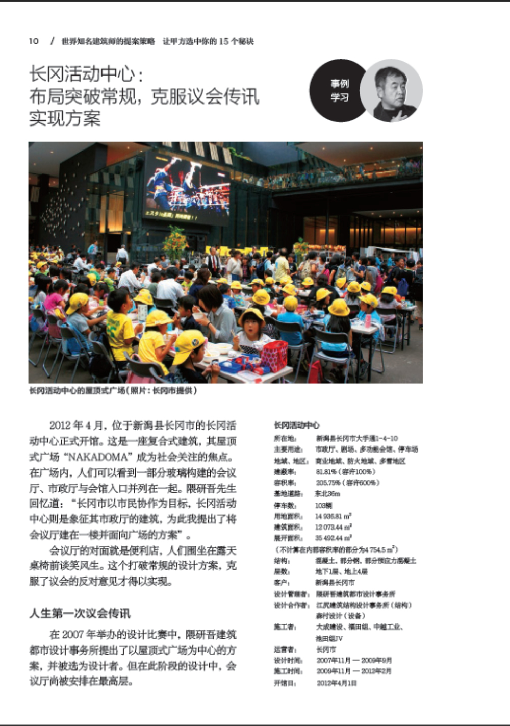 對(duì)建筑師和建筑系學(xué)生而言,不僅要掌握建筑設(shè)計(jì)相關(guān)的知識(shí),更需要將知識(shí)和理論轉(zhuǎn)化為生產(chǎn)力,而這本書告訴建筑師如何將知識(shí)和理論運(yùn)用在建筑方案之中,如何獲得客戶的信任,從而中標(biāo),相信隈研吾、青木茂等頗負(fù)盛名的日本第一線建筑師分享的秘訣對(duì)國(guó)內(nèi)建筑師和學(xué)習(xí)建筑專業(yè)的學(xué)生也會(huì)有借鑒作用。