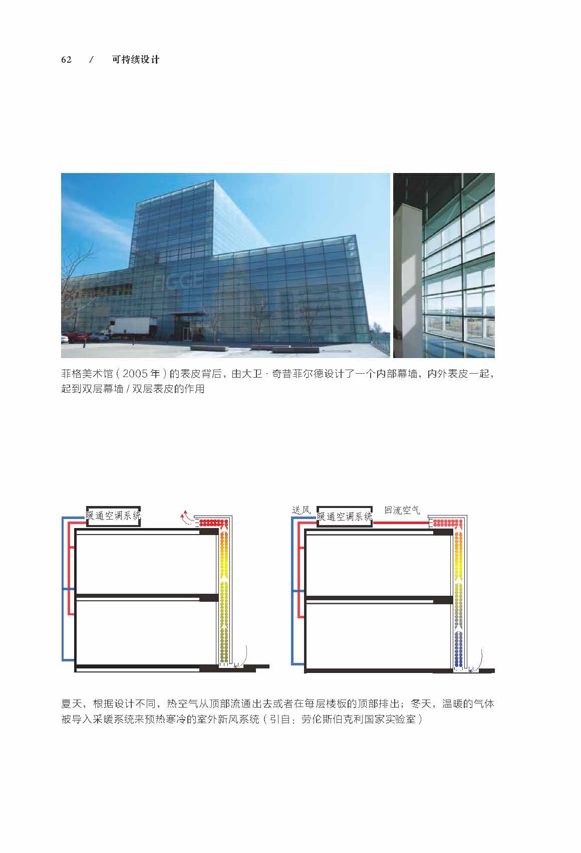 還有一些關(guān)于最佳解決措施的討論。在這些例子中,可能沒有唯一的答案,但是書中列出了各種觀點和它們的優(yōu)勢、劣勢。這些觀點也一直在進化。隨著我們在可持續(xù)設(shè)計領(lǐng)域經(jīng)驗的增長,知識也被顛覆著。今天的高科技解決方案還包含一些有待解決的問題,如“室內(nèi)環(huán)境質(zhì)量”一章中關(guān)于集約型建筑的討論就是一個經(jīng)典的例子。