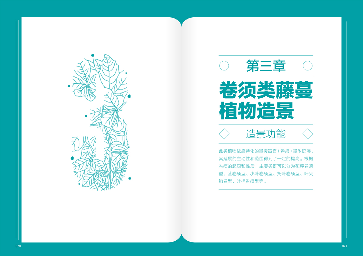 《藤蔓植物景觀》按照植物的特性和景觀功能分類(lèi),分為纏繞類(lèi)藤蔓植物造景、卷須類(lèi)藤蔓植物造景、吸附類(lèi)藤蔓植物造景、蔓生類(lèi)藤蔓植物造景,方便園林從業(yè)人員在實(shí)際應(yīng)用中參考借鑒。