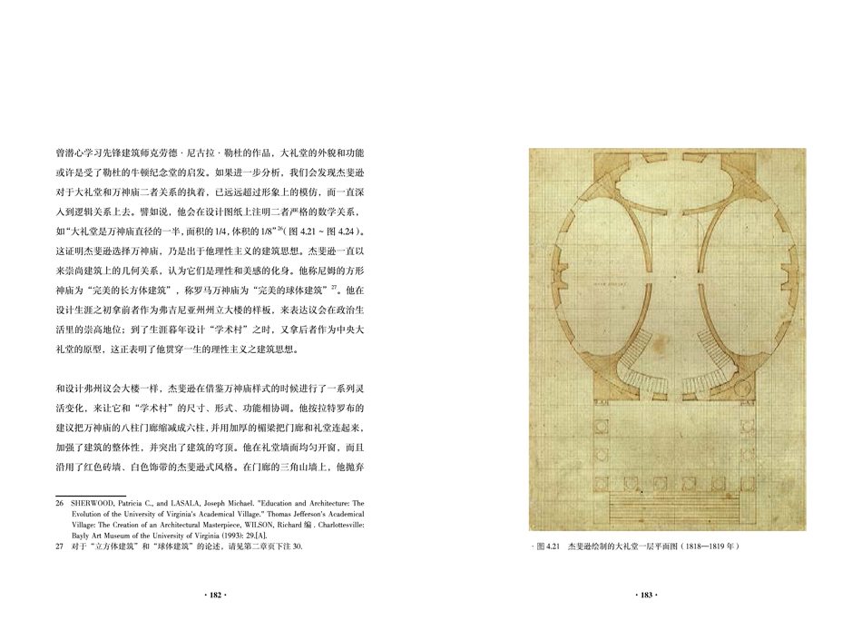 4.本書各位撰寫者,都曾在弗吉尼亞大學(xué)建筑學(xué)院學(xué)習(xí)并取得研究生學(xué)位。其專業(yè)的體驗和文化感受,便于讀者更深刻地理解杰弗遜的建筑思想。