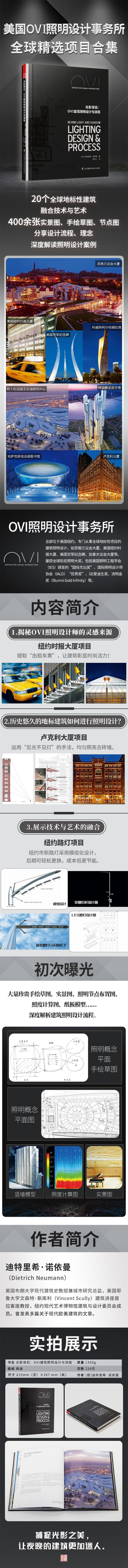 ★照明設(shè)計(jì)全流程大揭秘!不同于以往的建筑照明作品集,本書(shū)將重點(diǎn)關(guān)注照明設(shè)計(jì)的手法和過(guò)程,充分展示OVI建筑照明事務(wù)所獨(dú)特的照明設(shè)計(jì)理念、流程以及藝術(shù)與技術(shù)的融合。