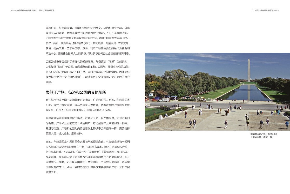 作者觀察了歐洲和美洲40多個(gè)城市,對(duì)這些城市的公共空間進(jìn)行了深入細(xì)致的觀察,對(duì)公共空間復(fù)興背后的政策和措施進(jìn)行了詳盡的了解,總結(jié)出城市公共空間復(fù)興的七個(gè)原則(對(duì)公眾開放、人人均可使用、吸引并保持市場(chǎng)需求、提供成功的城市框架、營(yíng)造宜居環(huán)境、形成市民社會(huì)、利用城市公共空間塑造城市生活),并提供了多個(gè)實(shí)際案例支持。對(duì)案例的解析除了空間層面的規(guī)劃和設(shè)計(jì),還深入地解析了具體的經(jīng)濟(jì)政策和社會(huì)政策,從歷史維度對(duì)公共空間的“形成——發(fā)展——衰敗——復(fù)興”進(jìn)行了詳細(xì)的分析和解讀。
