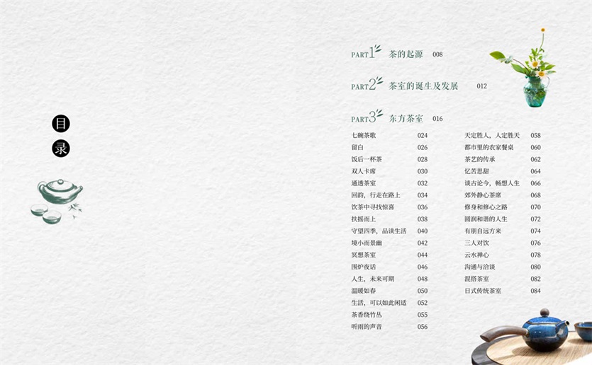該書融中國(guó)茶藝、日本茶道、韓國(guó)茶禮、英國(guó)紅茶文化與風(fēng)格設(shè)計(jì)于一體,含800余張高清大圖,內(nèi)容豐富,生活氣息深厚。