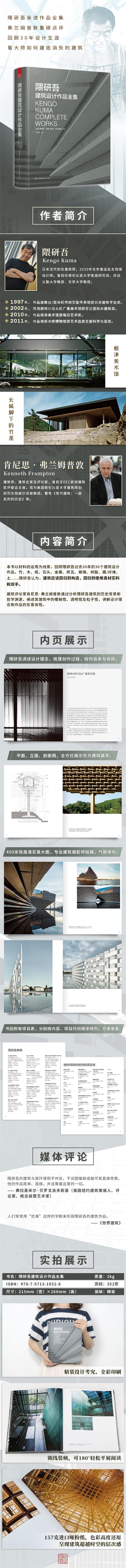 這本《隈研吾建筑設(shè)計(jì)作品全集》由隈研吾親自撰寫(xiě)前言闡述自己的職業(yè)歷程和設(shè)計(jì)理念,著名建筑評(píng)論家肯尼思?弗蘭姆普敦重磅點(diǎn)評(píng),精選代表性作品,專(zhuān)業(yè)攝影師拍攝高清實(shí)景大圖,結(jié)合平立剖和細(xì)部詳圖,全方位多角度地再現(xiàn)了隈研吾建筑作品的獨(dú)特魅力。