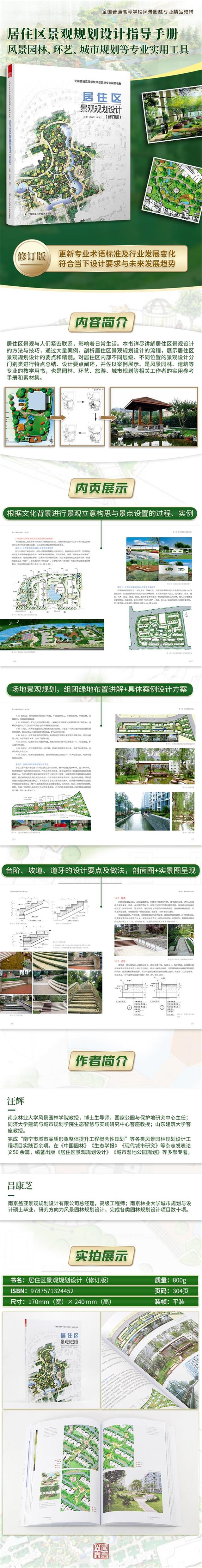 《居住區(qū)景觀規(guī)劃設(shè)計(jì)(修訂版)》通過大量的案例和實(shí)證,充分解析了居住區(qū)景觀規(guī)劃設(shè)計(jì)的流程,展示居住區(qū)景觀規(guī)劃設(shè)計(jì)的要點(diǎn)和精髓。對居住區(qū)內(nèi)部的不同層級(jí)、不同位置的景觀設(shè)計(jì)分門別類的進(jìn)行特點(diǎn)總結(jié)、設(shè)計(jì)要點(diǎn)闡述,并佐以案例展示。同時(shí)對居住區(qū)景觀設(shè)計(jì)得了流程以及每部分所需材料、所做工作都進(jìn)行了詳細(xì)的注解,使讀者對居住區(qū)景觀設(shè)計(jì)工作的有了系統(tǒng)化的了解。作者還結(jié)合設(shè)計(jì)手法,詳細(xì)介紹了居住區(qū)景觀中的設(shè)施和材料,是學(xué)習(xí)居住區(qū)景觀規(guī)劃設(shè)計(jì)的理想教材。