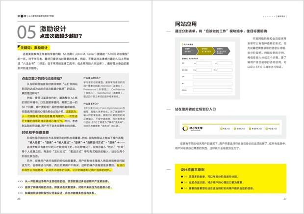 書(shū)中介紹了61個(gè)與設(shè)計(jì)息息相關(guān)的心理現(xiàn)象和心理偏見(jiàn)的關(guān)鍵詞及其基本解釋。每個(gè)心理現(xiàn)象都展示了與之相關(guān)的具體案例,以及在網(wǎng)站上的應(yīng)用方法。列舉了設(shè)計(jì)中的心理學(xué)現(xiàn)象應(yīng)用的三個(gè)要點(diǎn),方便讀者總結(jié)應(yīng)用。