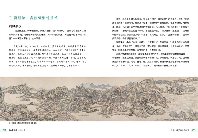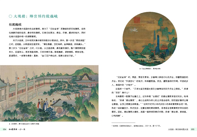 大觀園本是曹雪芹先生虛構(gòu)出的人間仙境,作者通過對我國現(xiàn)存的古典園林的造景手法和造園理念的大量舉例,從多個角度分析它們的差異和共性,并通過配圖古畫,使讀者對《紅樓夢》中描述的院落和園林有一個更加具象的認(rèn)知。一方面幫助讀者領(lǐng)會中國古典園林建筑的工藝美,體會古人的智慧和高超技藝,另一方面為紅學(xué)愛好者提供另一個研讀《紅樓夢》的角度,即使是大眾讀者,也能獲益匪淺。