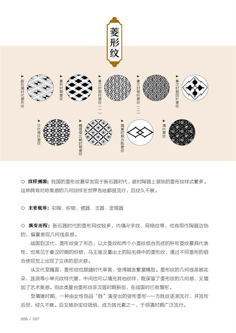 一、穿越時(shí)空的紋樣盛宴:還在為搞不清中國(guó)傳統(tǒng)紋樣而煩惱?翻開這本書,從新石器時(shí)代質(zhì)樸的鳥紋、菱形紋,到明清時(shí)期華麗的暗八仙紋、西番蓮紋,歷代經(jīng)典紋樣齊聚一堂。