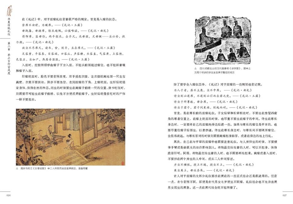 以《禮記》《周禮》《儀禮》等權(quán)威典籍為基,系統(tǒng)梳理站、坐、行、言、色等禮儀規(guī)范,還原傳統(tǒng)禮儀在各類生活場景中的實際運用,引讀者深入感受華夏禮樂文明的精神內(nèi)涵。